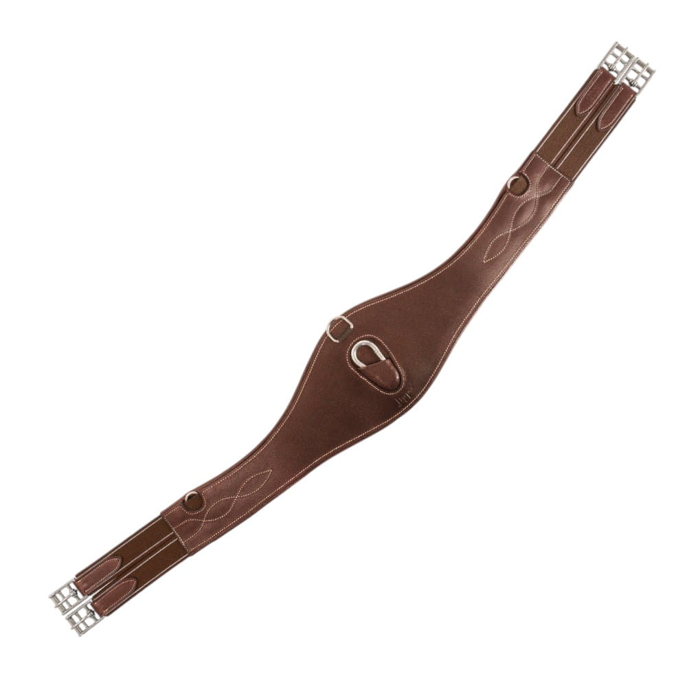 Anatomicznie zaprojektowany popręg z wysokiej jakości skóry garbowanej roślinnie, zapewniający optymalny komfort i dopasowanie. Łączy w sobie wytrzymałość i elastyczność, utrzymując siodło w odpowiedniej pozycji. Dzięki mocnej, potrójnej gumie na obu końcach, stylowym przeszyciom i trzem kółkom typu D jest zarówno funkcjonalny, jak i stylowy. Karabińczyk ułatwia mocowanie pomocy dodatkowych, a mniejsza płytka brzuszna jest proporcjonalna do rozmiaru.