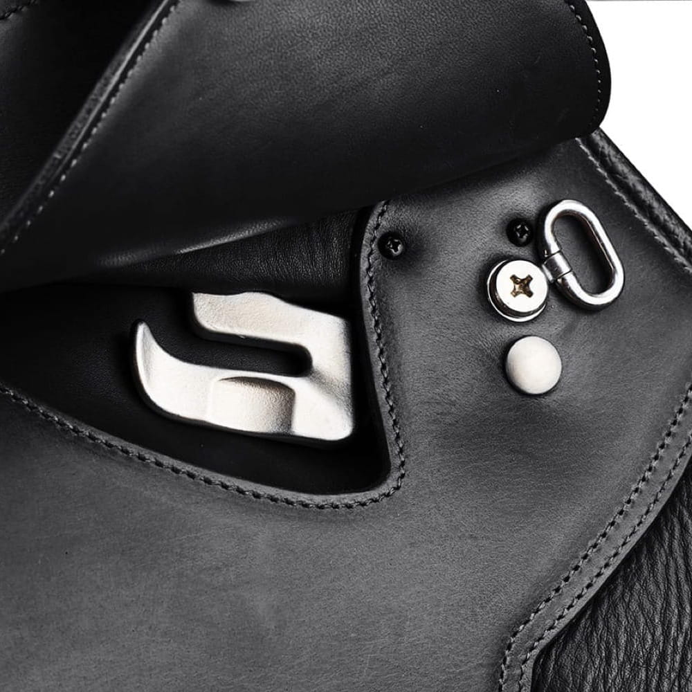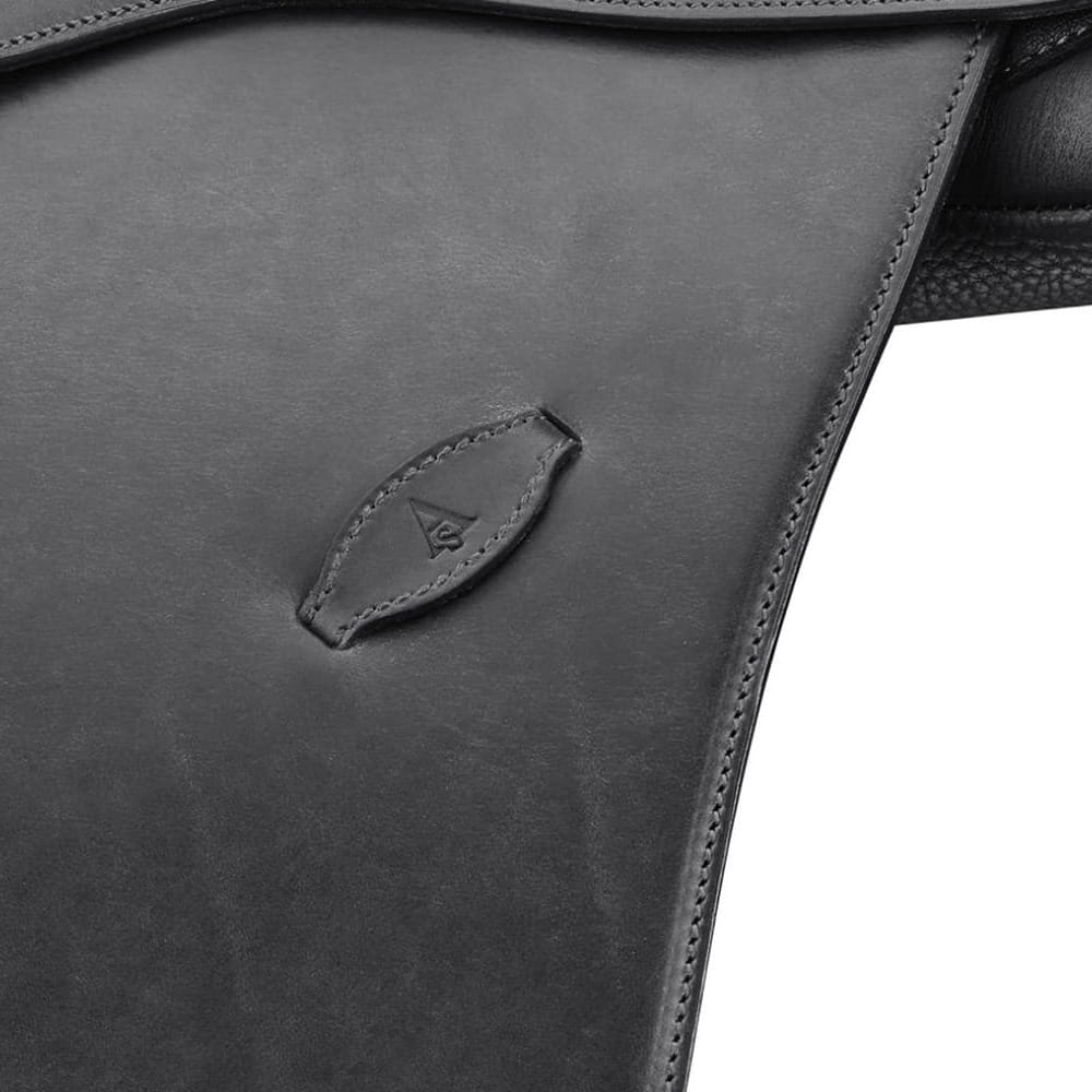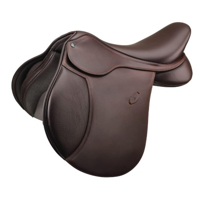 Siodło jest wykonane ze skóry, posiada system wymiennych łęków oraz klocki kolanowe na rzepy.