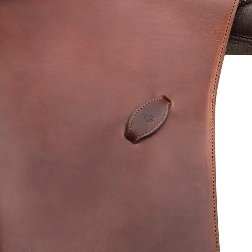 Siodło jest wykonane ze skóry, posiada system wymiennych łęków oraz klocki kolanowe na rzepy.