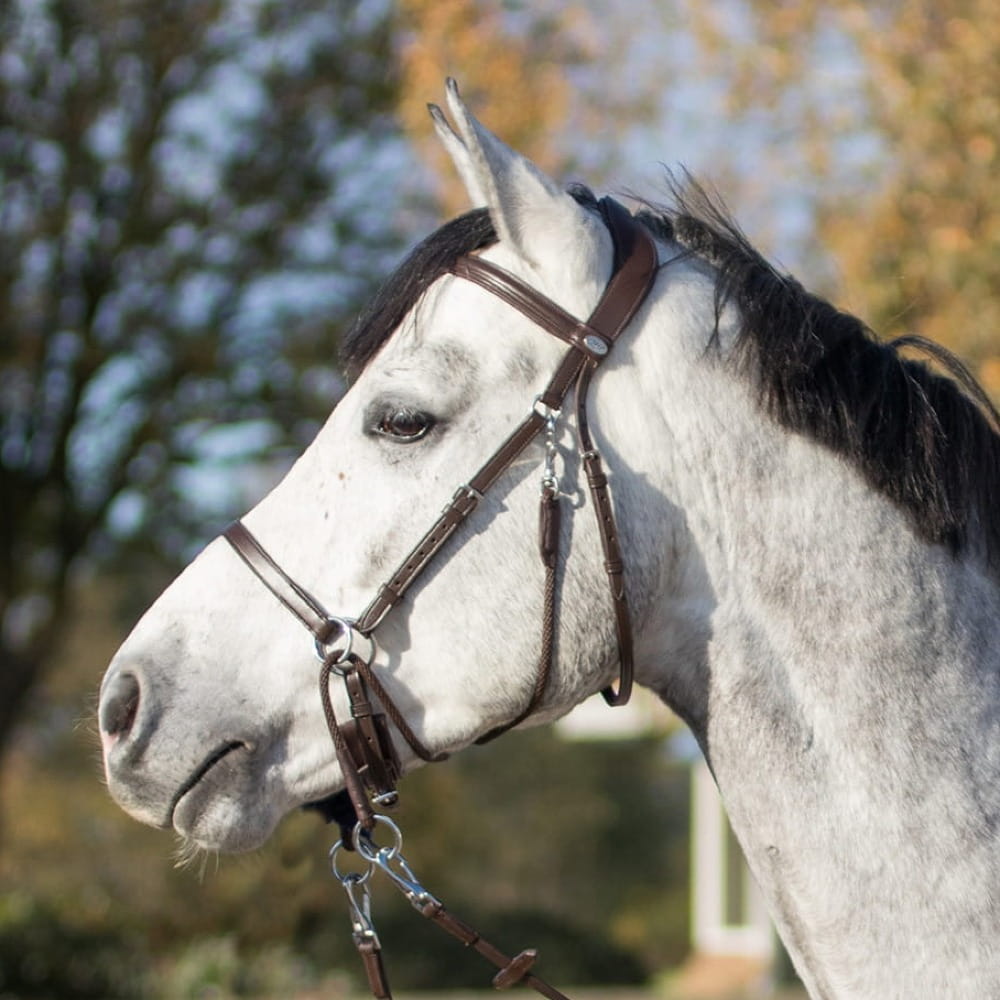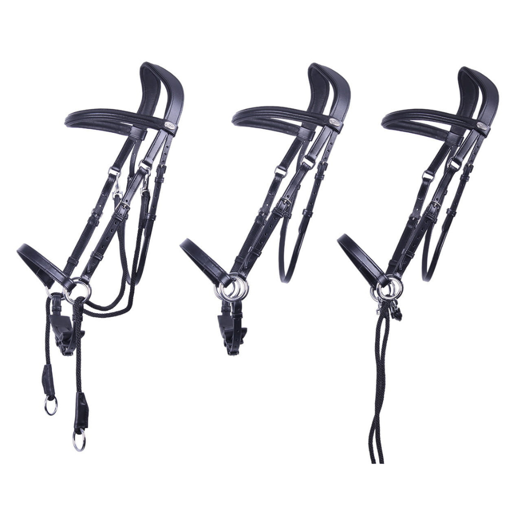 Wielofunkcyjne ogłowie bezwędzidłowe, które można używać jako ogłowie do sidepull, chin cross i jaw cross. Idealne, jeśli używasz kilku rodzajów ogłowi bezwędzidłowych lub nie wiesz jeszcze, które z nich będzie najlepsze dla Twojego konia. Zaczepy na sznurkach i wodzach ułatwiają regulację ogłowia.