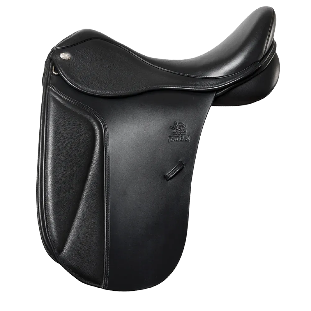 Luksusowe siodło ujeżdżeniowe dla wszystkich typów koni o niskim kłębie i płaskim grzbiecie (nie tylko typu Cob), dające jeźdźcowi poczucie siedzenia blisko konia.