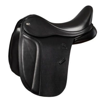 - Zgrabne i kompaktowe siodełko o średniej głębokości, które wyrównuje i wspiera jeźdźca w optymalnej pozycji ujeżdżeniowej