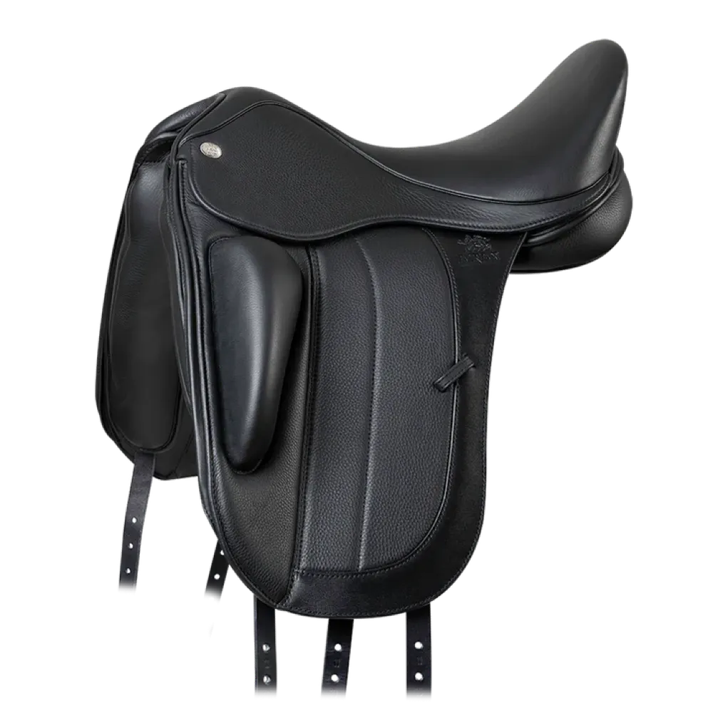 Luksusowe siodło ujeżdżeniowe o niskim profilu, odpowiednie dla koni o niskim kłębie lub płaskim grzbiecie (takich jak holenderskie gorącokrwiste, Connie lub bardziej okrągłe). Wąskie panele i precyzyjnie wyszlifowane siedzisko dają poczucie siedzenia blisko konia.