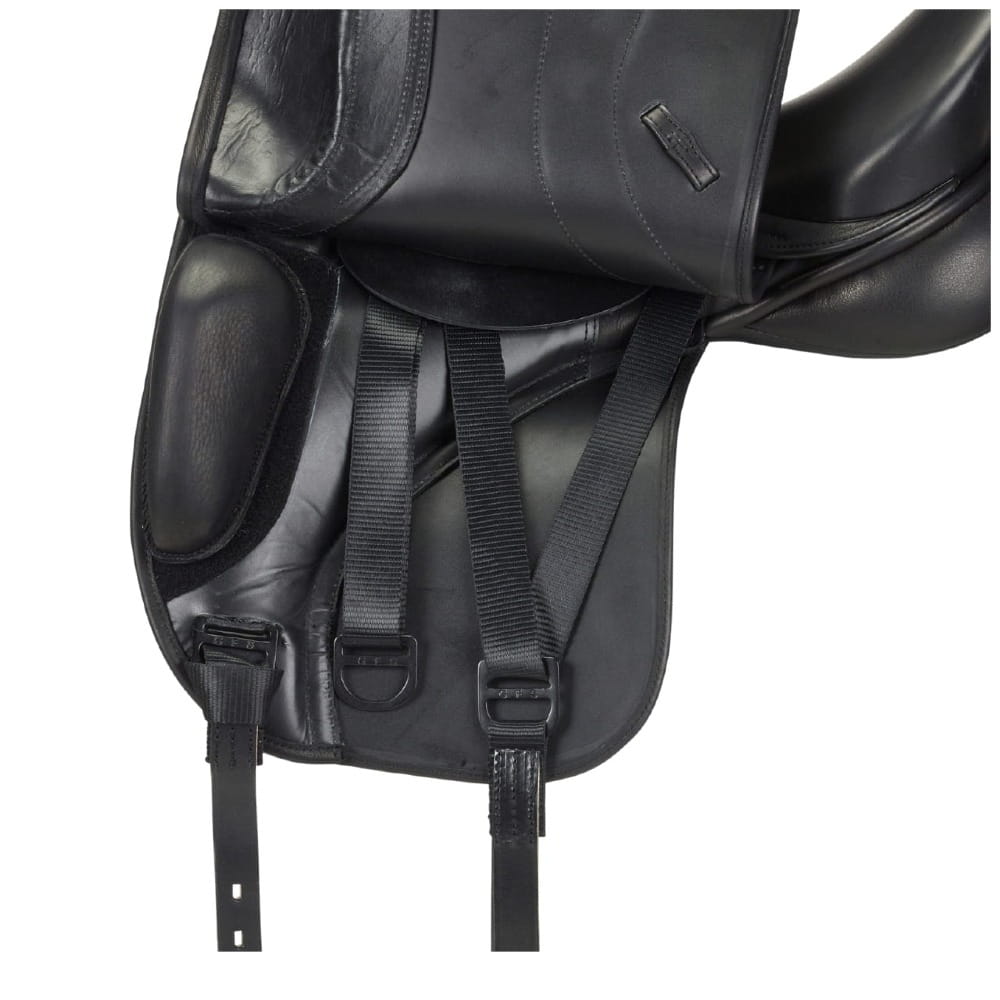 Dzięki szeroko zakrojonym badaniom i pracom rozwojowym zaprojektowaliśmy siodło Apex Dressage tak, aby pasowało do koni o wyższym kłębie. Udało się to osiągnąć dzięki dłuższym sztycom i wyższemu tylnemu klinowi, a także dodatkowym przednim klinom, które zwiększają możliwości uzyskania dokładnego dopasowania. Niewielkie obniżenie panelu pomaga również podeprzeć siodło, zapewniając odpowiedni prześwit. Siodło Apex Dressage zapewnia jeźdźcowi wspierające siedzisko, a klocki kolanowe z rzepem pomagają uzyskać prawidłową pozycję nóg.