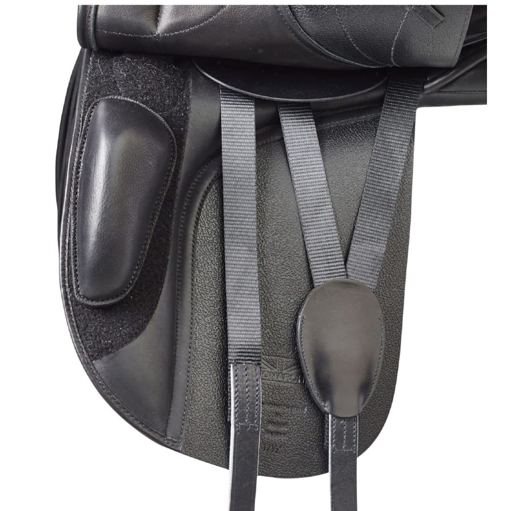 Pasuje dla mniej doświadczonego jeźdźca, ponieważ ma głębokie siedzisko. Połącz to ze zdejmowanymi, regulowanymi klockami kolan, aby zapewnić zrównoważoną pozycję podczas jazdy. Elastyczny system przystuł w kształcie litery Y zapewnia stabilność i doskonałe dopasowanie.