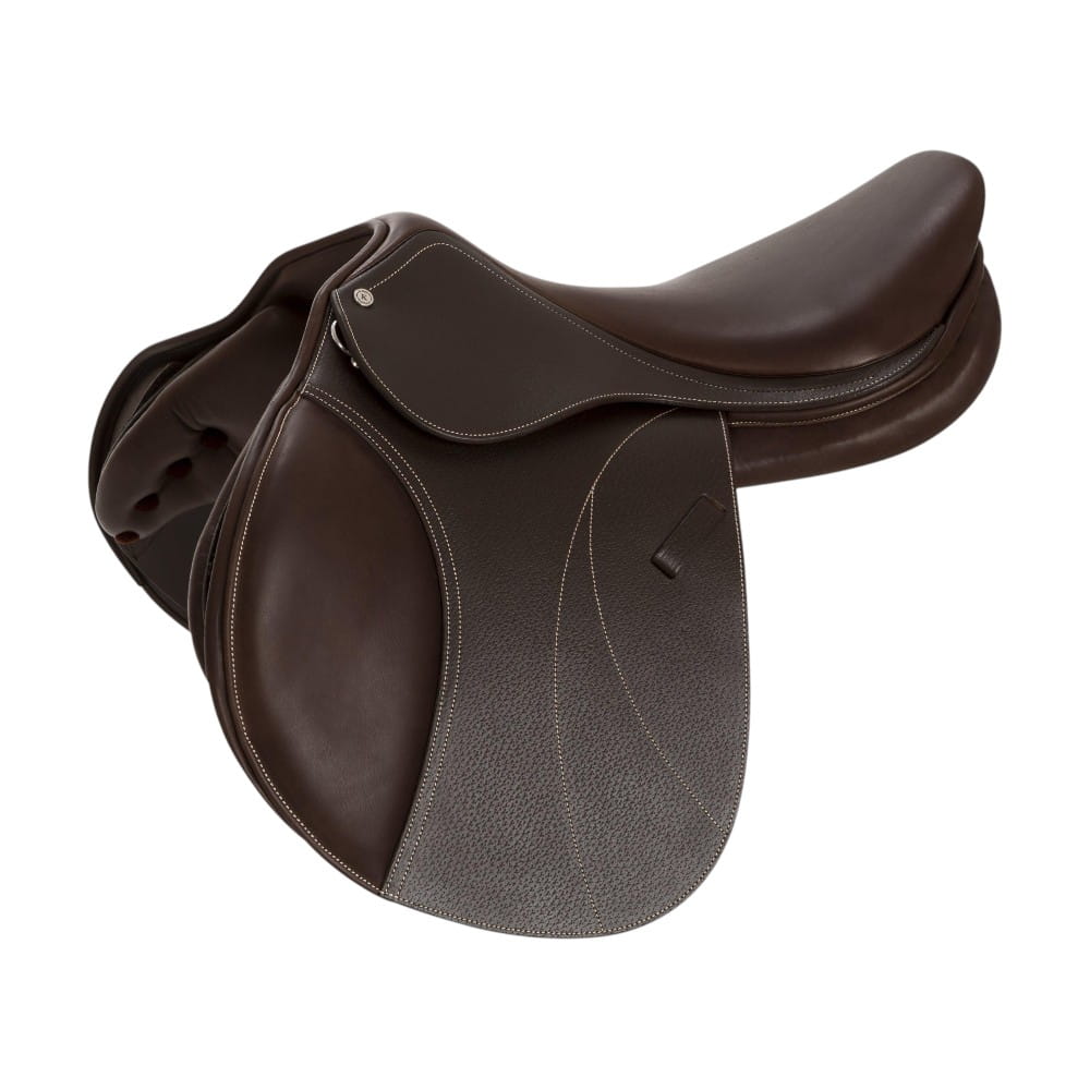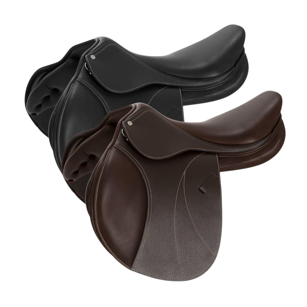 Popularne siodło skokowe z wytrzymałej skóry z szerokim kanałem i wyściółką WoolFlex, która zapewnia równomierne i delikatne wyściełanie. Klocki na rzepy. Syntetyczna terlica z wymiennymi łękami.