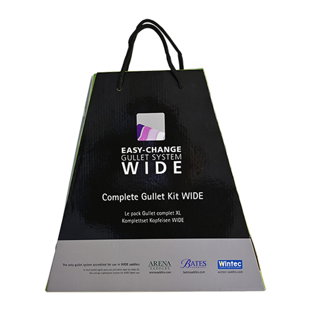 Easy Change Wide Gullet System zawiera szersze przełyki dla szerszego konia. Kompletny zestaw zawiera cztery rozmiary łęków od 1XW do 4XW, mocowania i skróconą instrukcję pomiaru łyków dla szerokich siodełek Wintec, Arena i Bates CAIR.