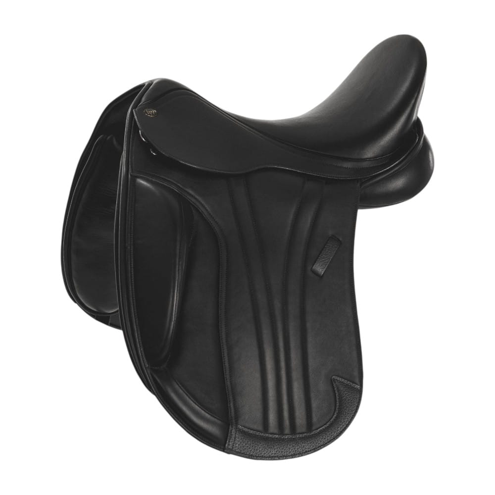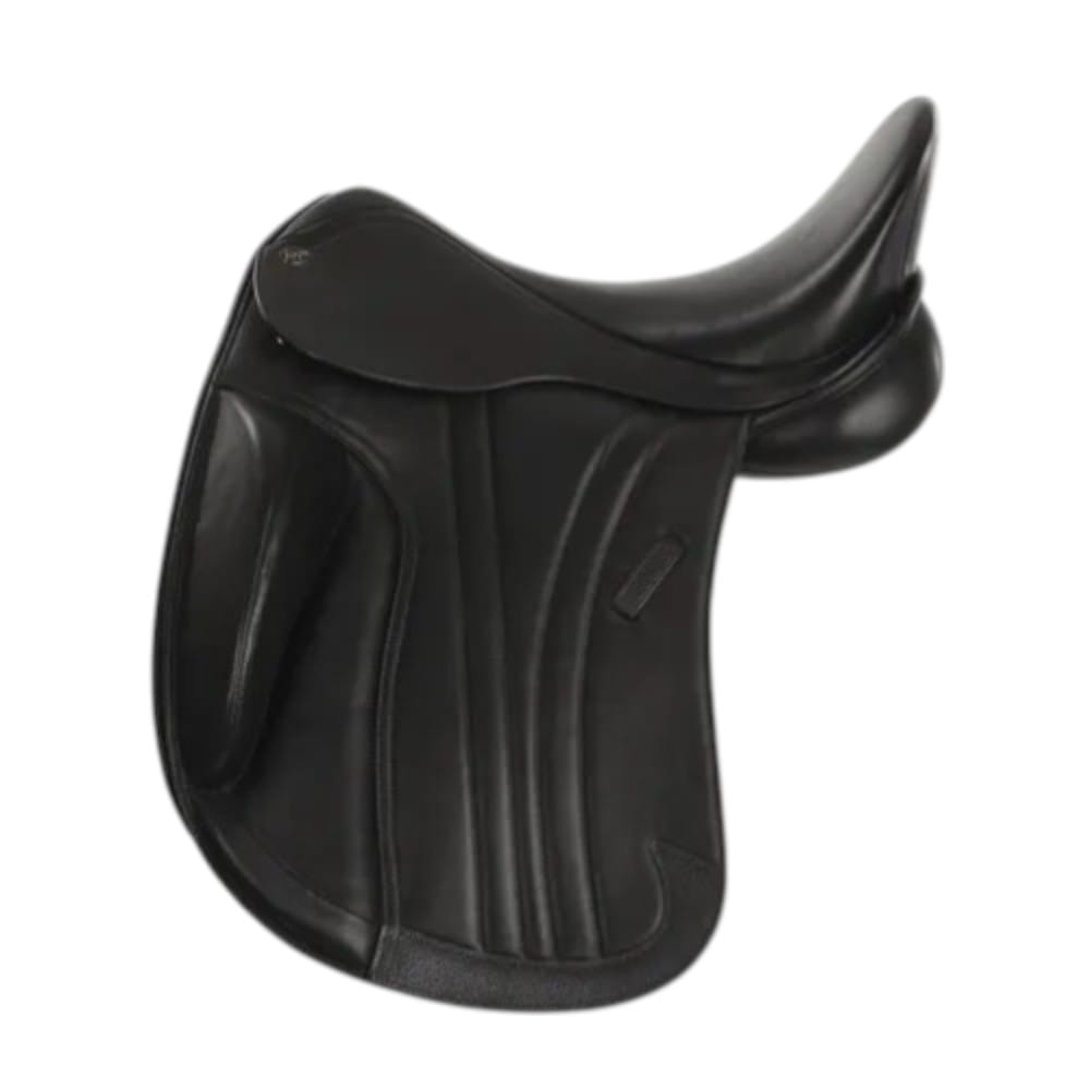 Przystępne cenowo, nowoczesne siodło ujeżdżeniowe ze skóry cielęcej. Wykonane w całości z miękkiej skóry europejskiej. Zaprojektowane, aby skutecznie pomóc jeźdźcowi w znalezieniu właściwej pozycji na koniu. Siodło o bardzo dobrym dopasowaniu, które dobrze leży na koniu i jest odpowiednie dla większości koni. Panele wypełnione SmartWool, syntetycznym włóknem wełny z warstwą neoprenu u dołu. Warstwa neoprenu jest oddychająca i wodoodporna. Syntetyczna terlica z wymiennymi łękami. W zestawiełęk w rozmiarze M.