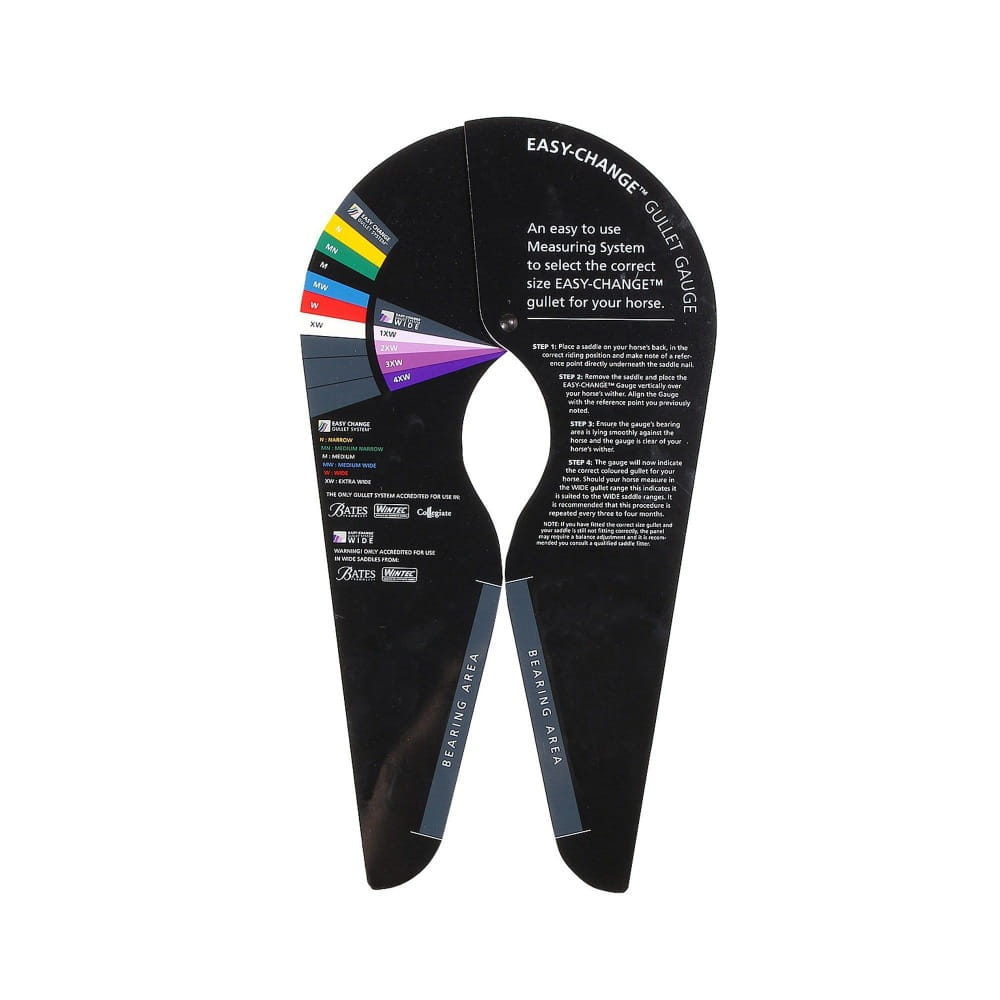 Łatwy w użyciu system pomiarowy do doboru odpowiedniego rozmiaru łęku dla twojego konia. Miernik może być używany do monitorowania dopasowania siodła do kłębu konia. Ten proces monitorowania należy przeprowadzać co 3 do 6 miesięcy lub gdy zmienia się rodzaj pracy, którą wykonuje koń.