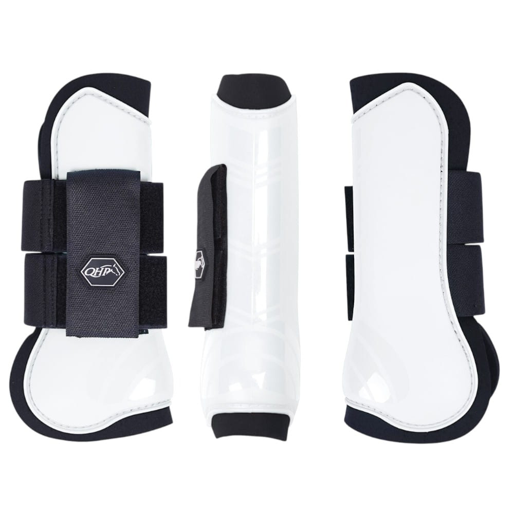 Zestaw dwóch ochraniaczy na ścięgna z twardą skorupą i podszewką z neoprenu. Zapinane na rzep.