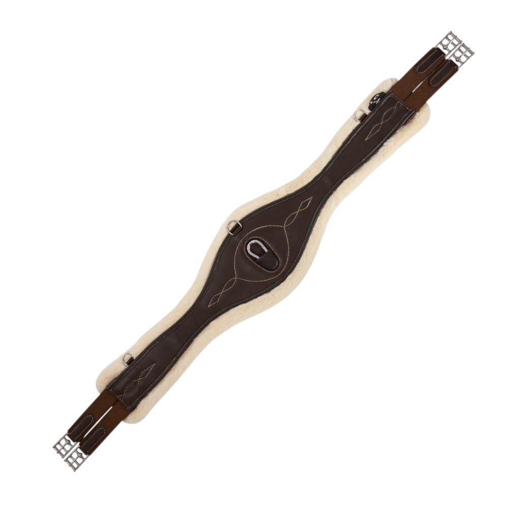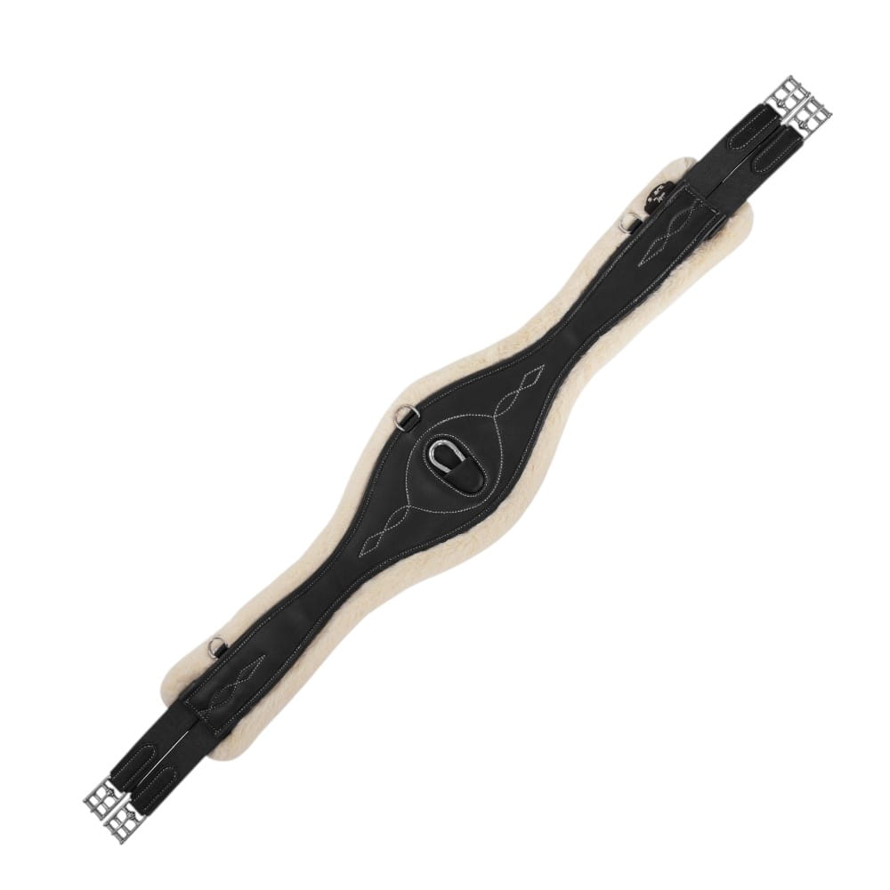 Anatomicznie zaprojektowany popręg skokowy z miękkim, odpinanym, syntetycznym futerkiem, które można prać w temperaturze 30°C. Wykonany z łatwej w pielęgnacji i wytrzymałej skóry syntetycznej Quik Clean™. Klamry i kółka typu D ze stali nierdzewnej oraz potrójna guma na obu końcach. Trzy kółka typu D do mocowania wodzy pomocniczych. Karabińczyk do łatwego wpięcia pomocy.