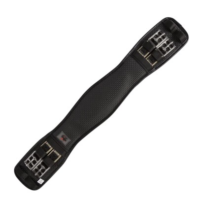 Anatomiczny popręg ujeżdżeniowy z materiału Sympatex z wszytą wkładką żelową dla zmniejszenia ucisku. Ukryta gumka na obu końcach i sprzączki ze stali nierdzewnej.