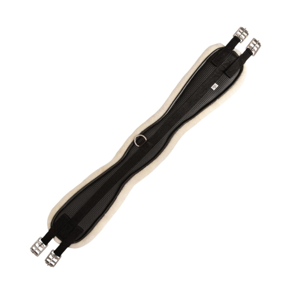 Popręg anatomiczny z materiału sympatex ze sztucznym futerkiem zapobiegającym otarciom. Potrójna guma na obu końcach i srebrne klamry. Kółko typu D do mocowania wodzy pomocniczych.
