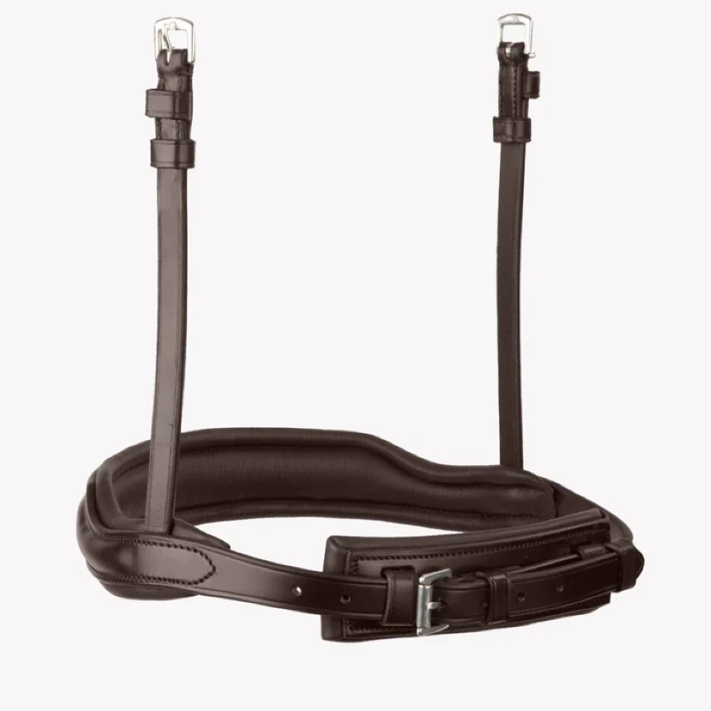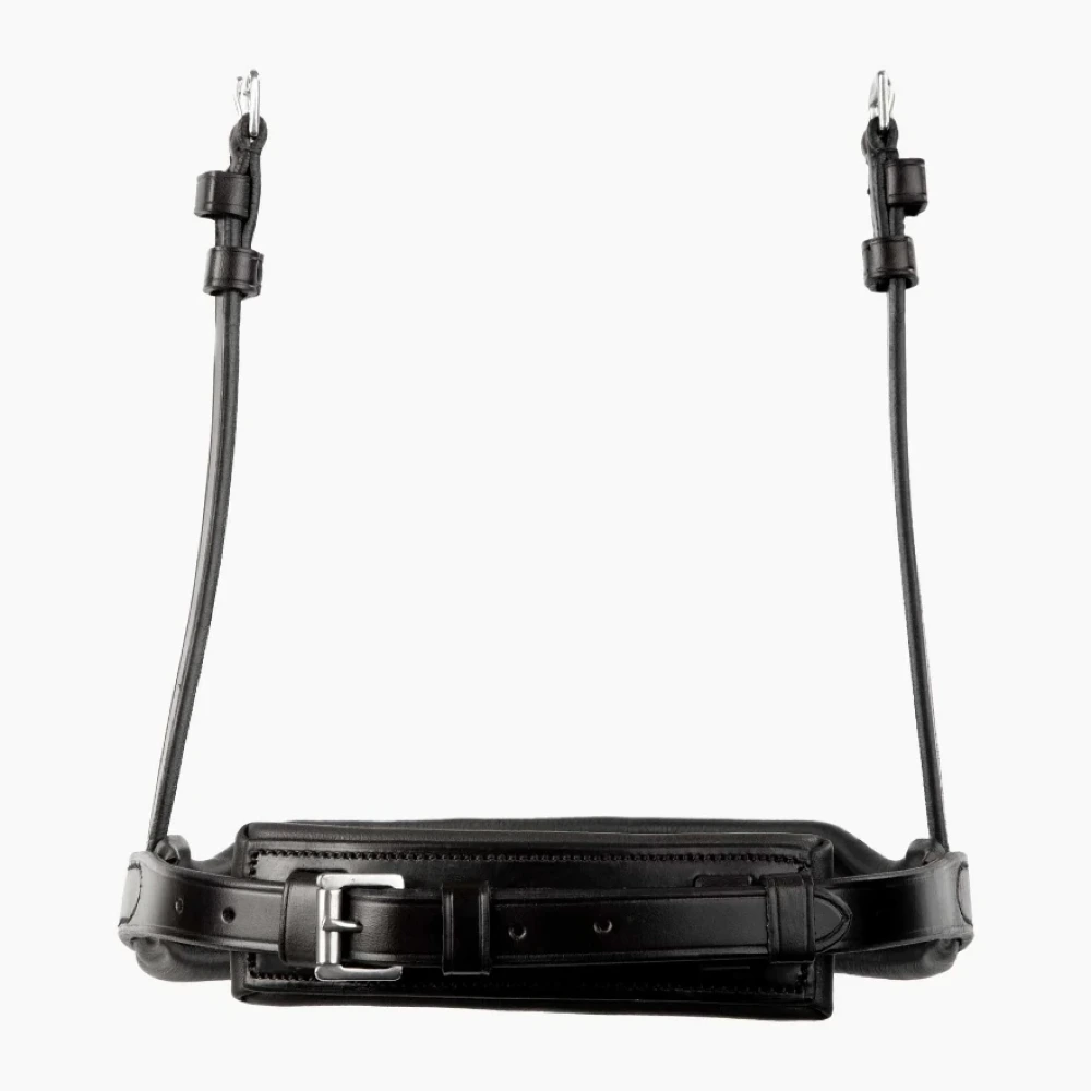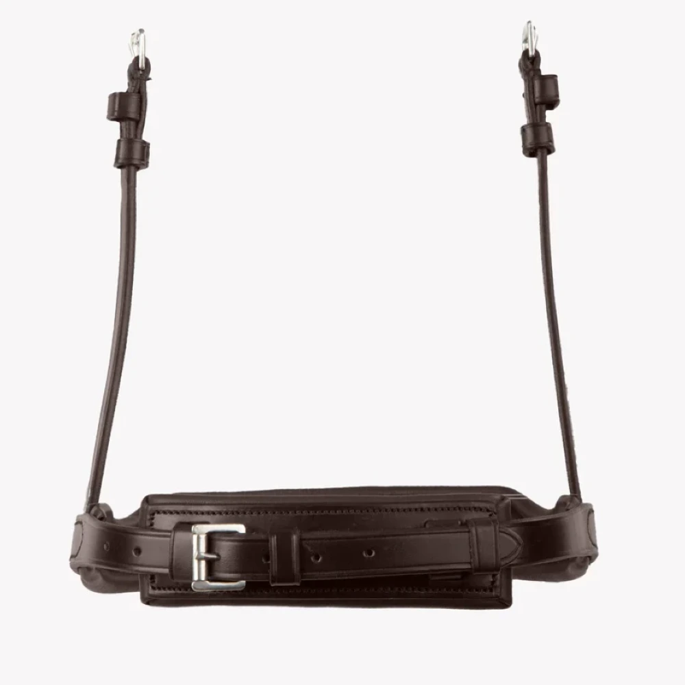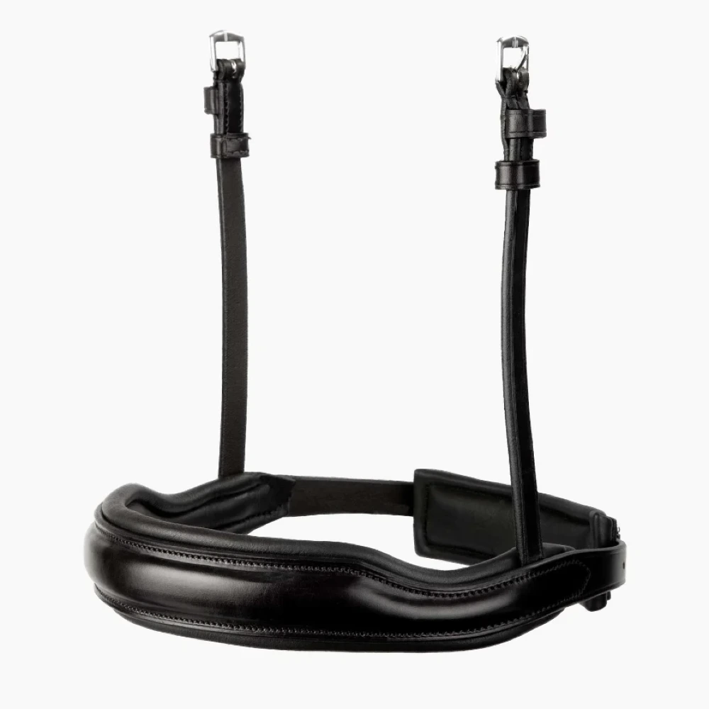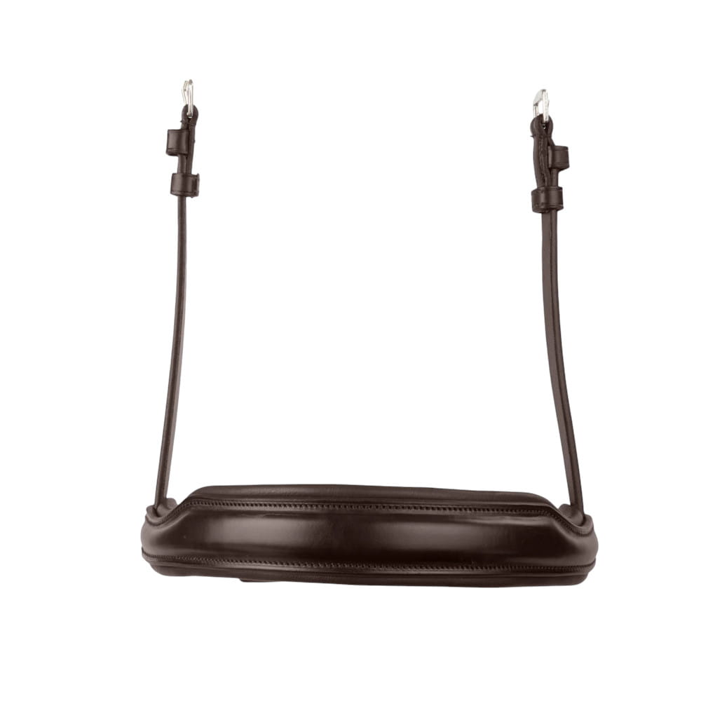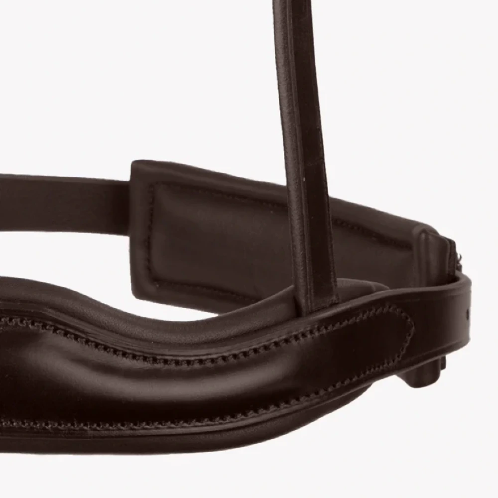 Wykonany z wysokiej jakości włoskiej skóry, ten anatomiczny nachrapnik został starannie wyprofilowany, aby konturować wokół nosa i kości policzkowych konia, aby uzyskać wygodniejsze i bardziej ergonomiczne dopasowanie.