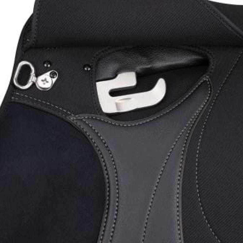 Siodło posiada długie ujeżdżeniowe przystuły i system CAIR w panelach.