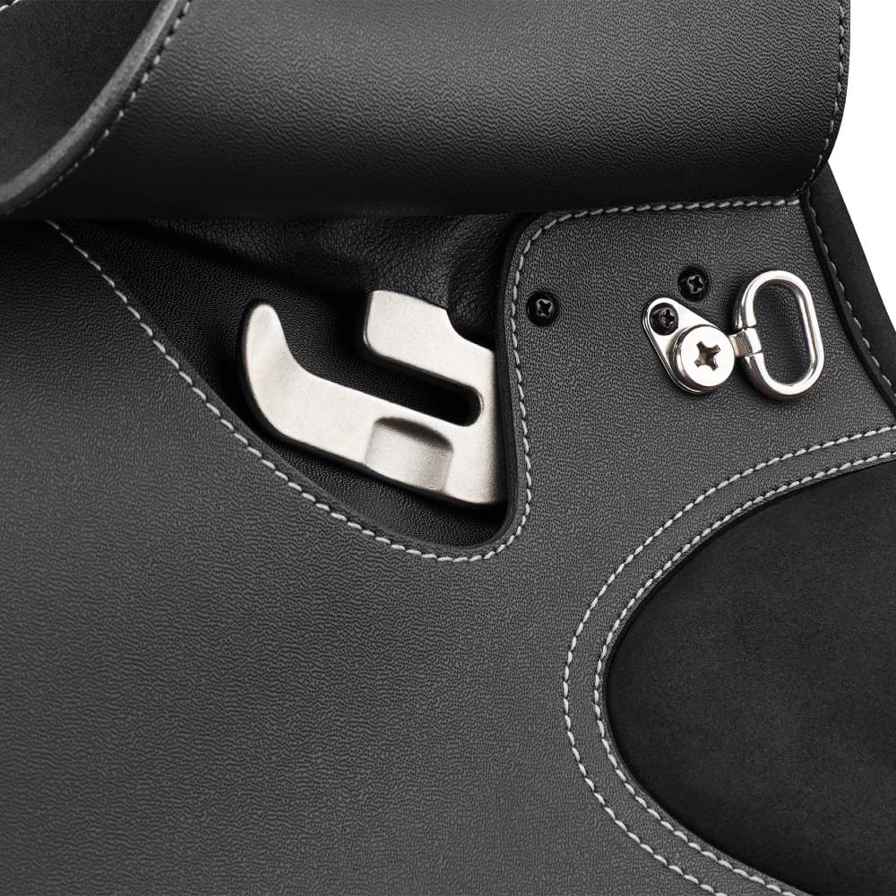 Poczuj kontrolę i pewność, że szybujesz nad dowolnym torem skoków, ponieważ super miękkie głębokie siedzisko zapewnia doskonały poziom przyczepności, aby wspierać równowagę bez ograniczania ruchów. W tym siodle twoja noga z łatwością znajdzie naturalny rowek, a kontakt i komunikacja staną się bezwysiłkowe. Dla Twojego kucyka stworzyliśmy super miękkie panele, które dopasowują się do jego pracujących mięśni i wokół nich, dopasowując się do jego budowy na każdym kroku i pozwalając mu latać.