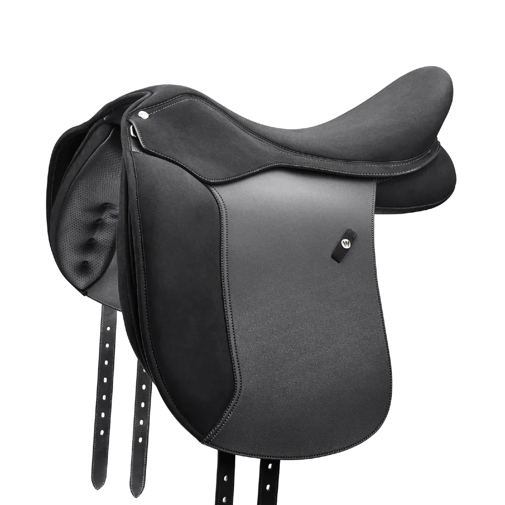 Zaprojektowany specjalnie dla Ciebie i Twojego szerokiego konia, aby trenować lub rywalizować na każdym poziomie w całkowitym komforcie. Poczuj wsparcie w supermiękkim, głębokim siodle Wintec Pro Wide Dressage i doświadcz całkowitego luksusu w najwyższej klasy siodle ujeżdżeniowym. Doświadcz wyjątkowej stabilności i wsparcia dzięki przyczepnemu materiałowi na siedzeniu i wyrafinowanej konstrukcji, aby zapewnić uczucie bliskiego kontaktu, umożliwiając bezproblemową komunikację nóg w celu użycia pomocy. Twojemu szerokiemu koniowi spodobają się super miękkie panele uformowane w jego mięśniach i wokół nich, otulające ich wyjątkową budowę i umożliwiające im swobodę ruchów podczas treningu lub zawodów w ujeżdżeniu.